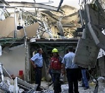 The Palestinian rocket crashed without warning into the roof of the three-floor building, fired from the former Israel Dugit site in N. Gaza just when President Bush was winding up a conversation with Israeli prime minister Ehud Olmert. The attack revived fresh demands for a major operation to put a stop to the daily attacks from the Gaza Strip. Ashkelon is 15 km north of Gaza.